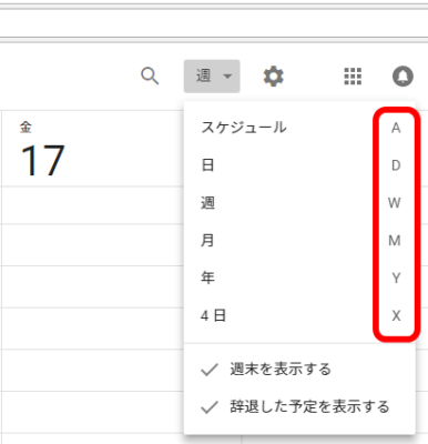 Google カレンダーのショートカットキー